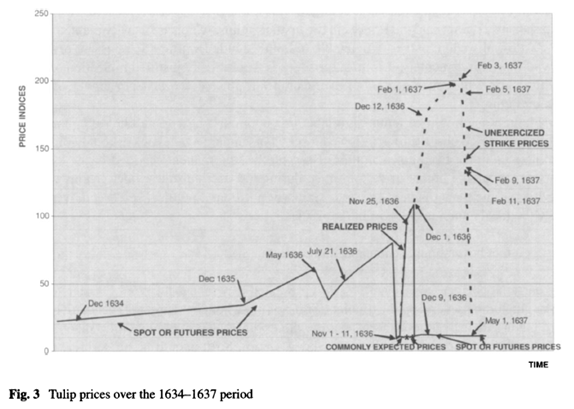 Thompson’s convinced that the TM was nothing but an “artifact” of a mandatory conversion of original future contracts to option contracts by the Dutch courts. There was nothing maniacal about the prices in this period. On the contrary, the market was impressively price efficient and fundamentally driven. Both his rational explanation and quantitative proof of this fact is quite interesting to read.